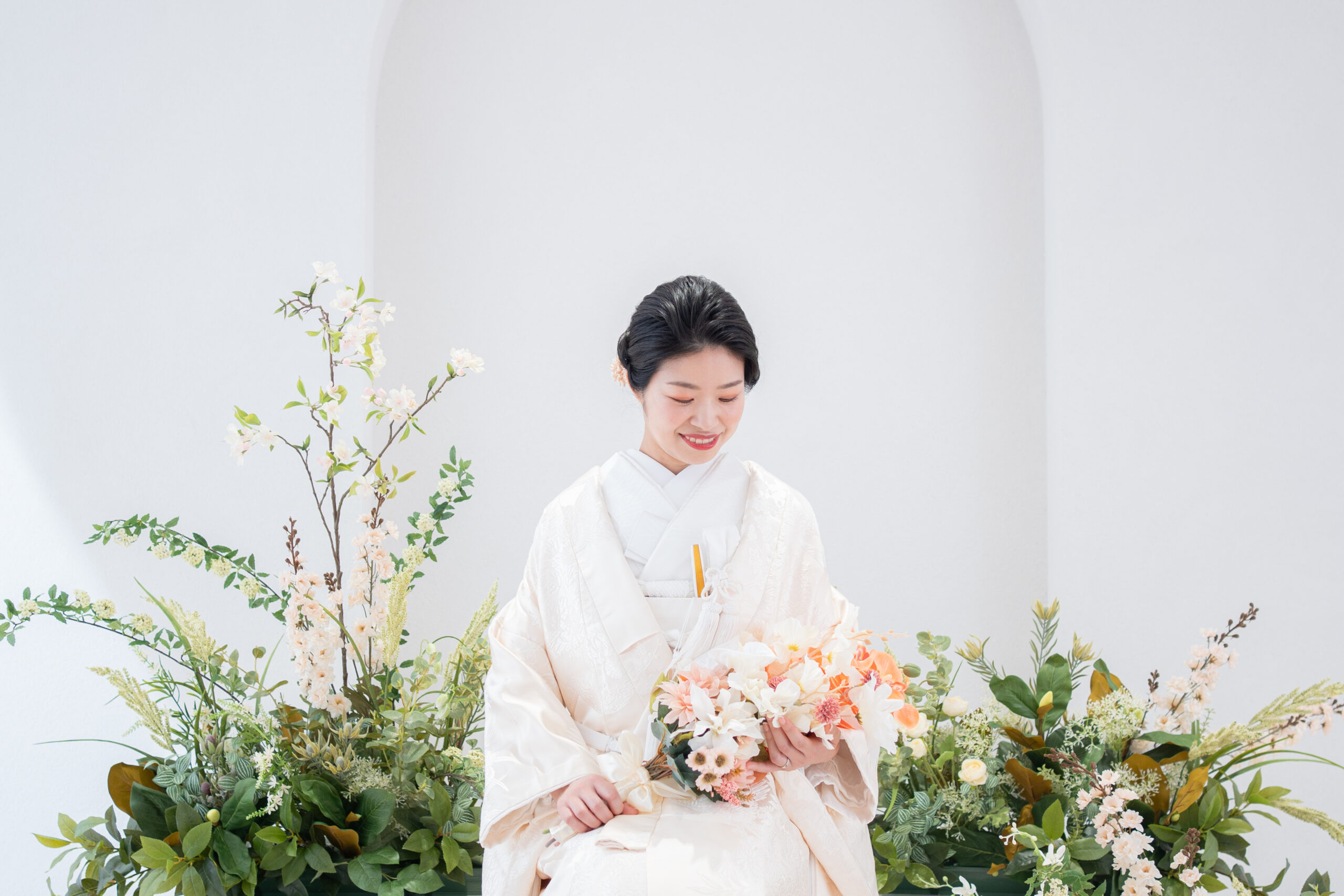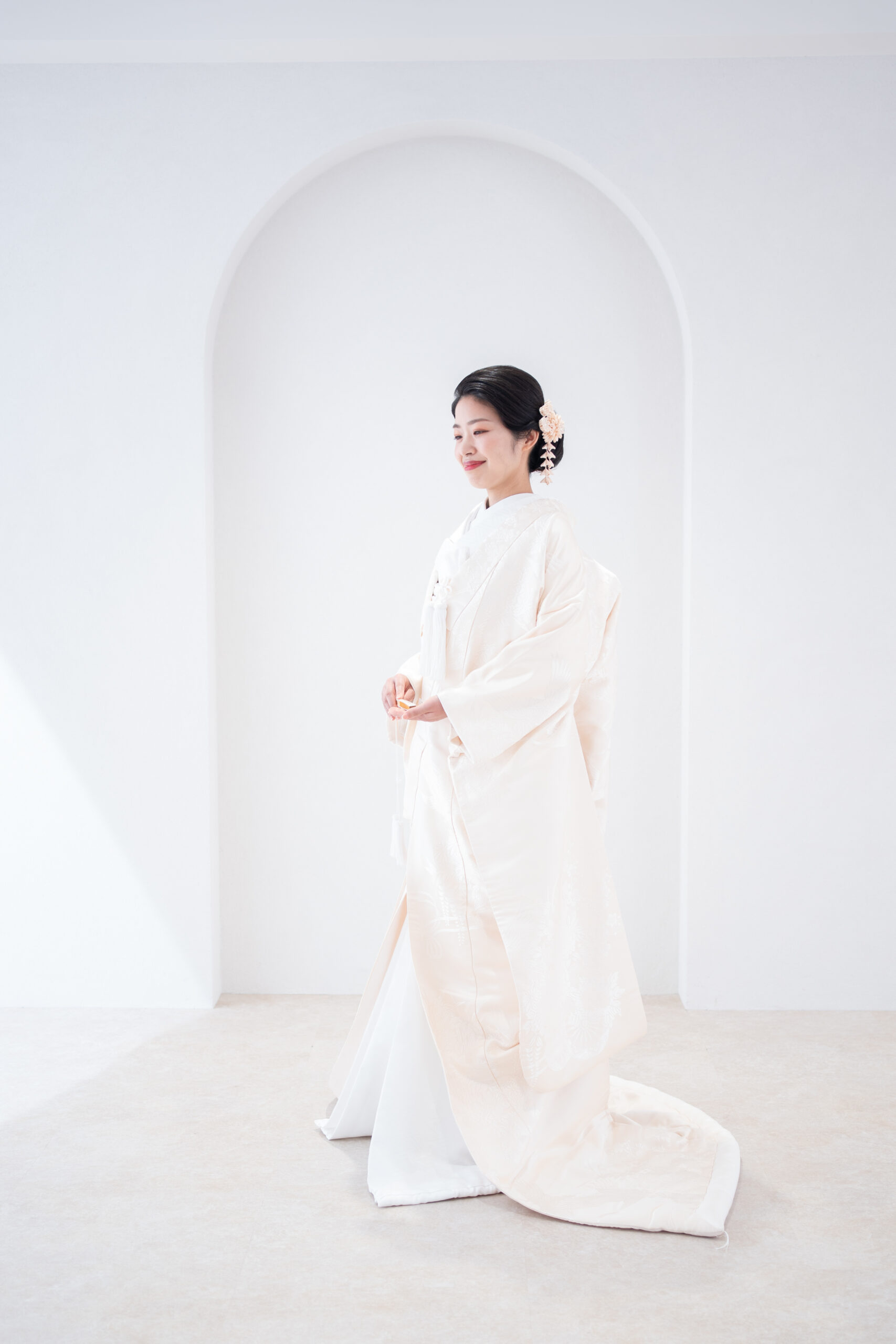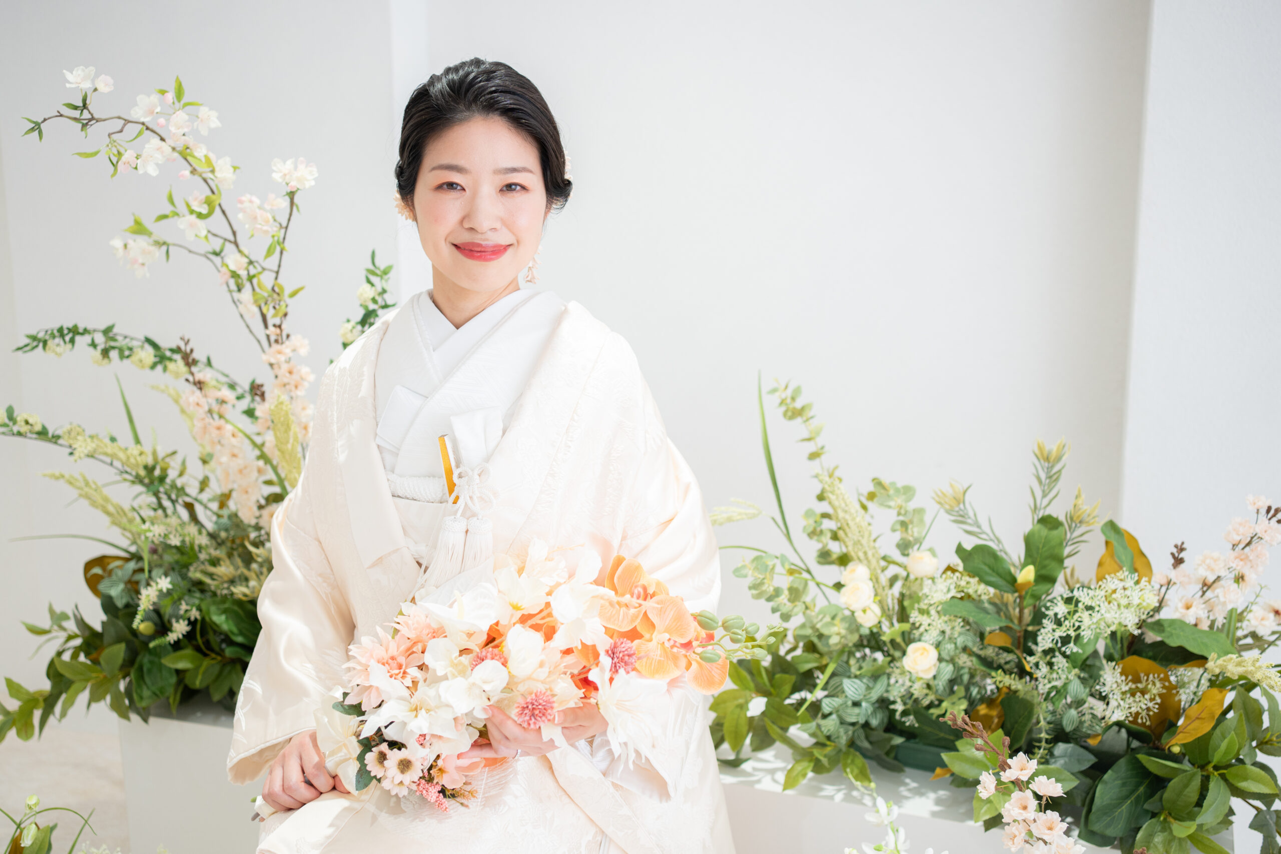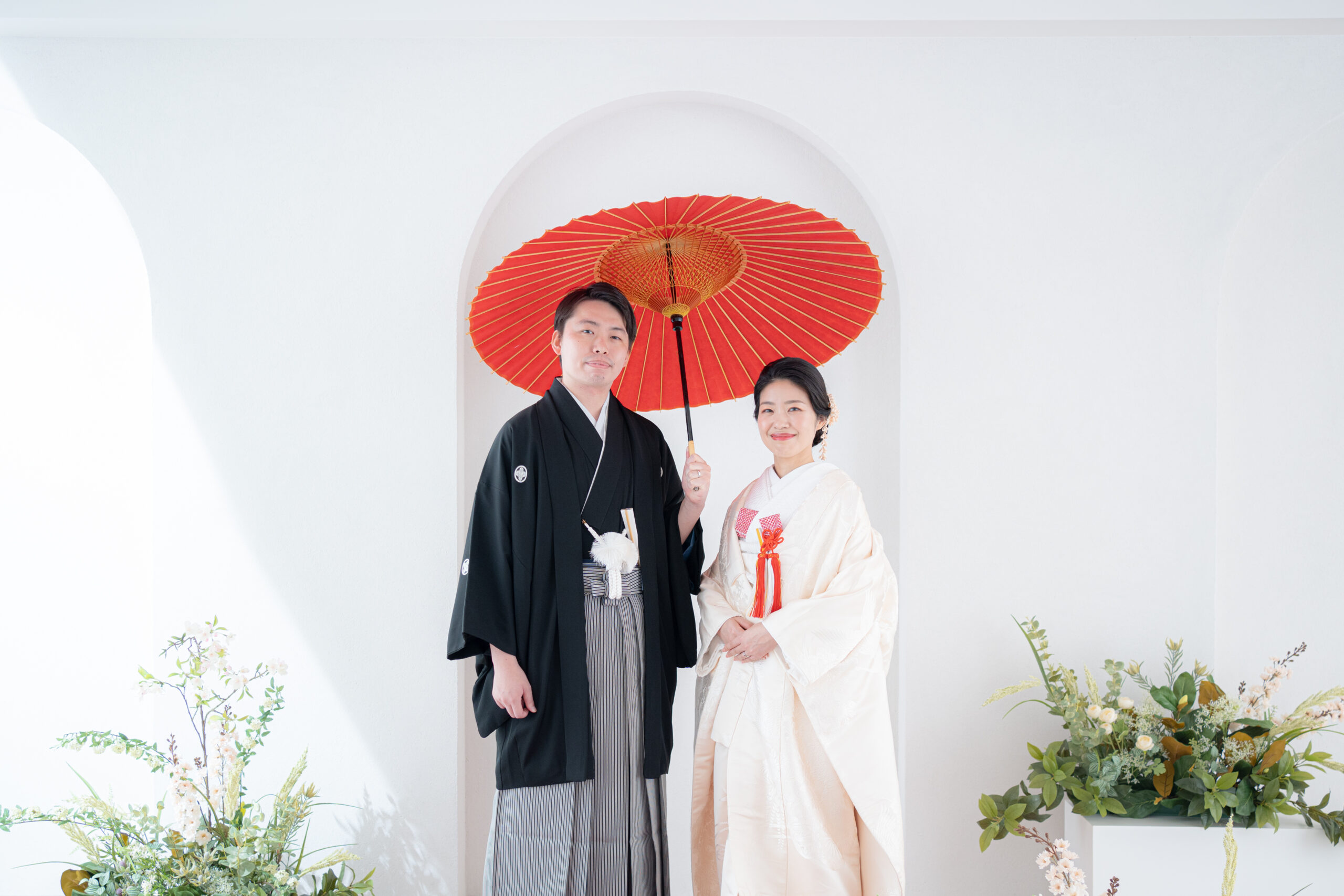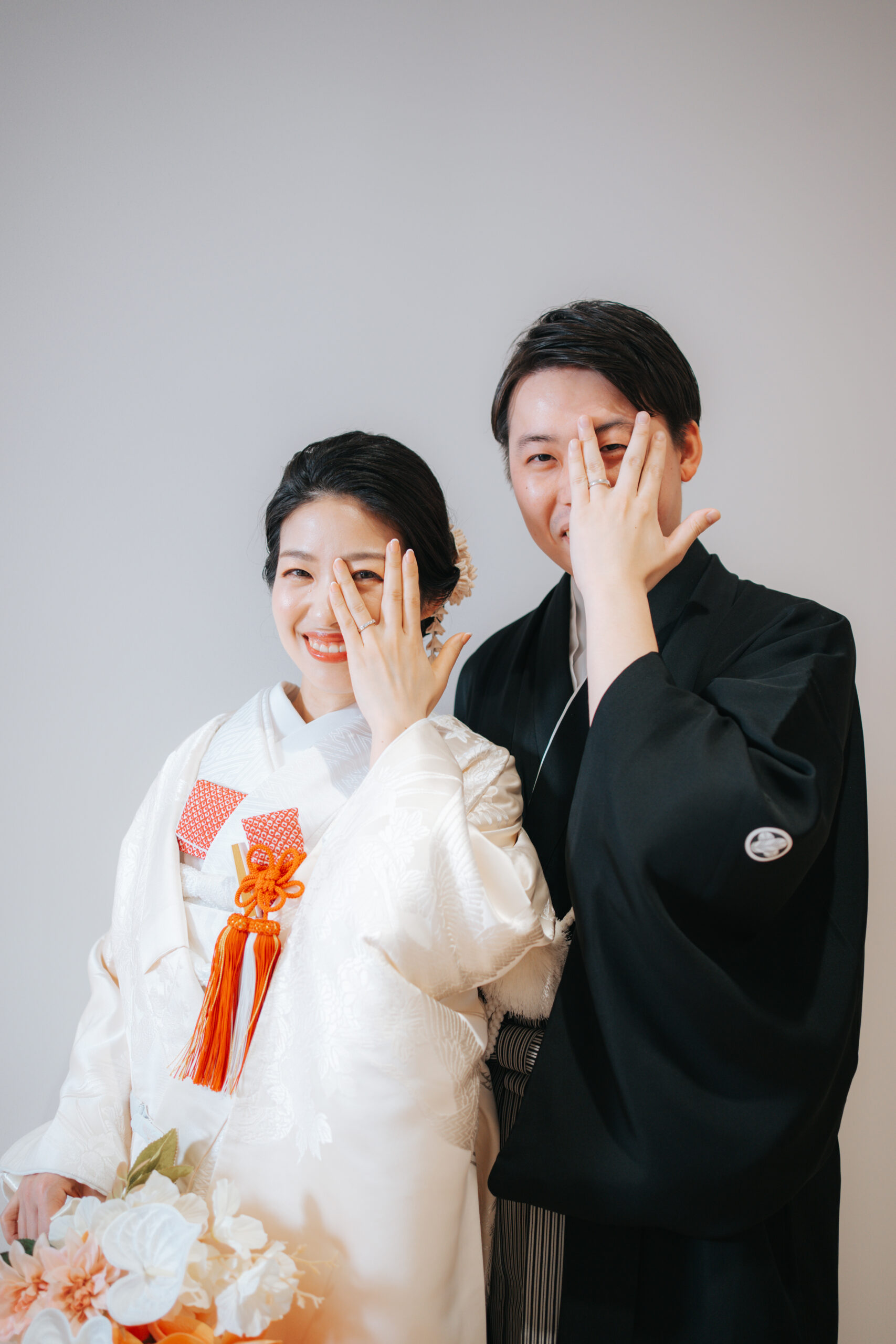 (((WASOU PLAN)))結婚式の前撮りとして和装でのウェディングフォトを撮影いただきました。白無垢と紋付袴での撮影は、白いスタジオに映える凛々しさ。お持ちいただいた和装ブーケはご新婦様のご自前で、白無垢に優しく映える素敵なブーケでした。キリリとした和装ならではのフォトだけではなく、お2人をつなぐきっかけにもなった【日本酒】を撮影アイテムとして採用。「見返したときに笑顔になれるようなフォト」をご希望だったお2人らしい、素敵な笑顔のフォトになりました。前撮りのフォトデータは結婚式のペーパーアイテムやWEB招待状にもおすすめです。スケジュールなどお気軽にご相談くださいませ。