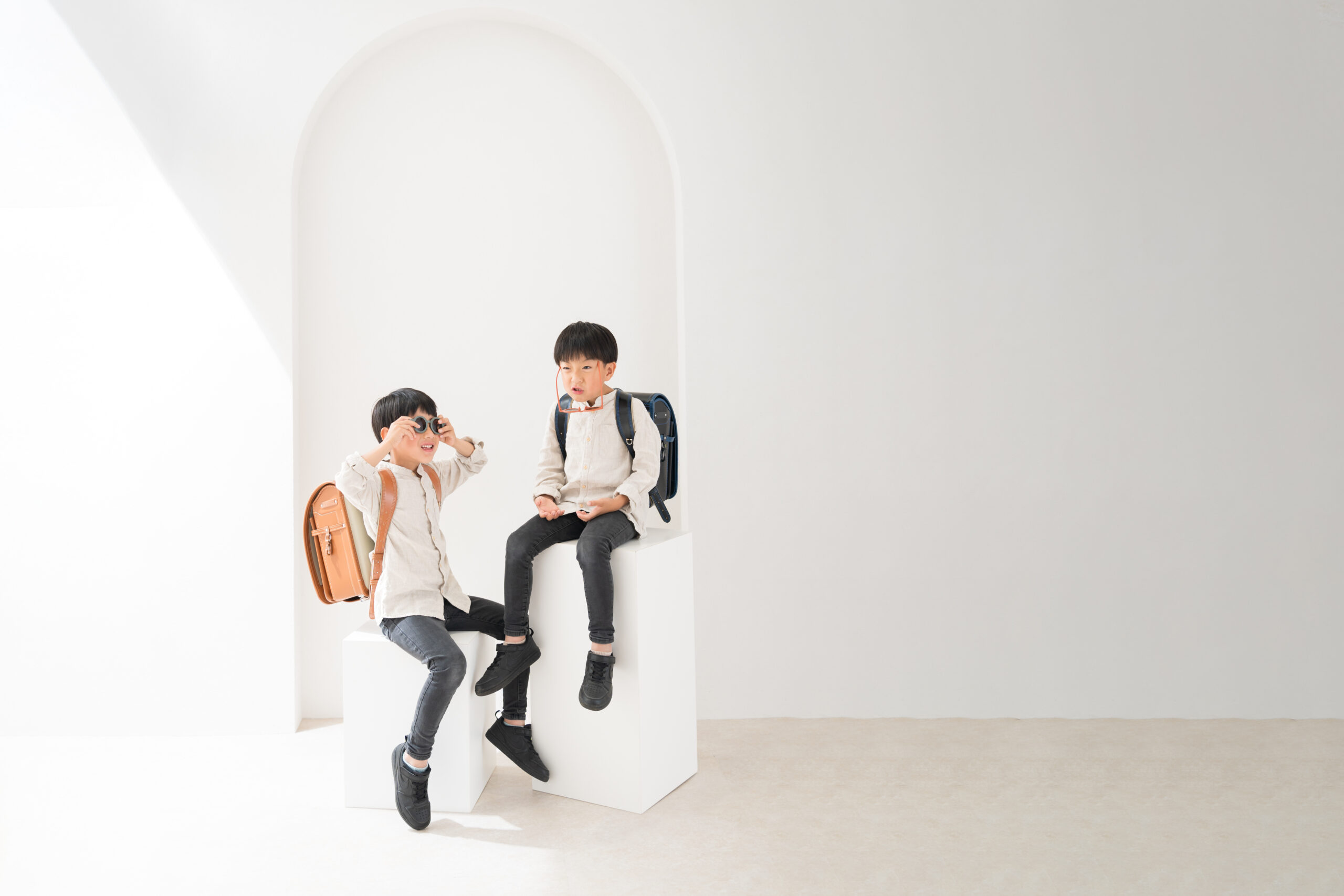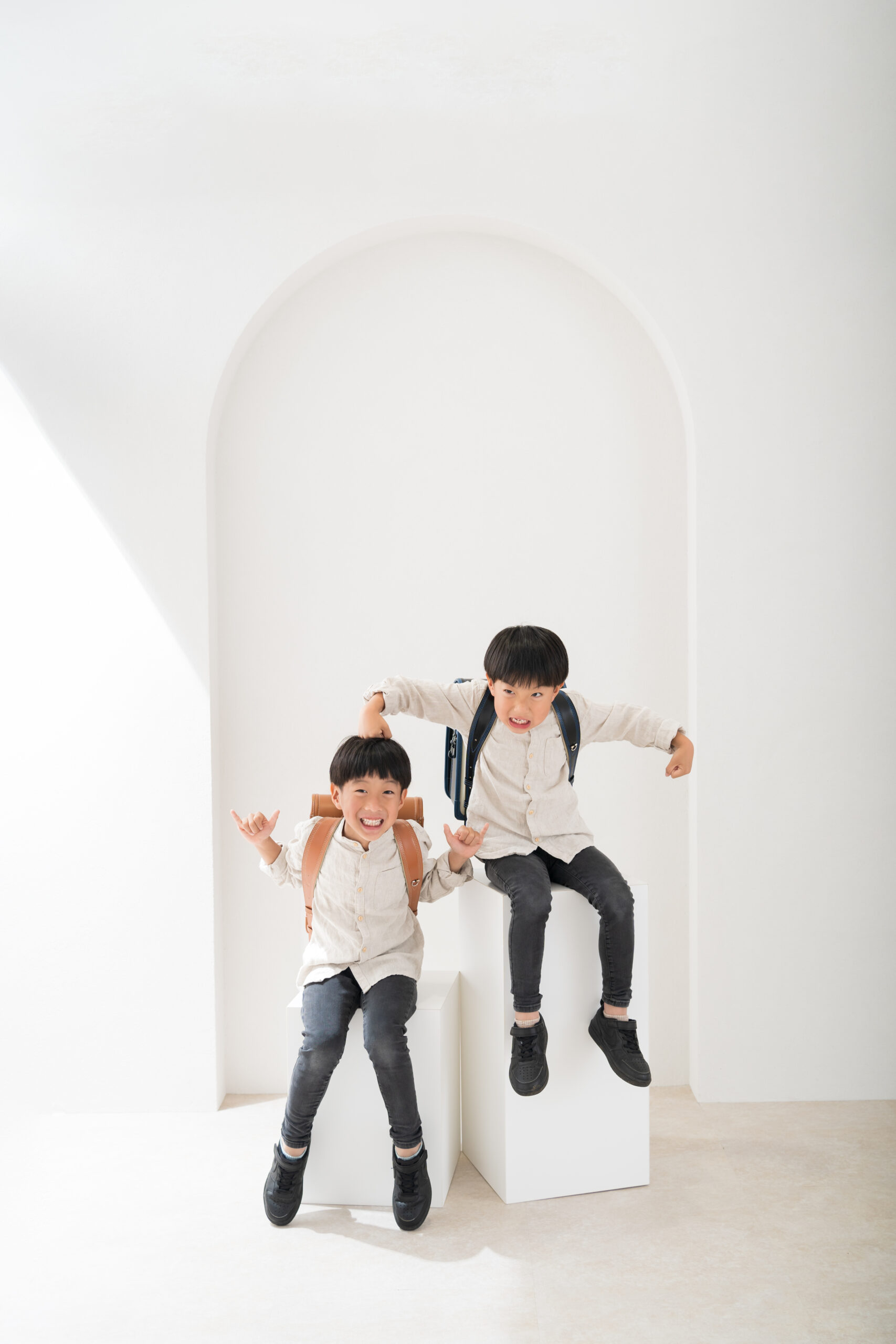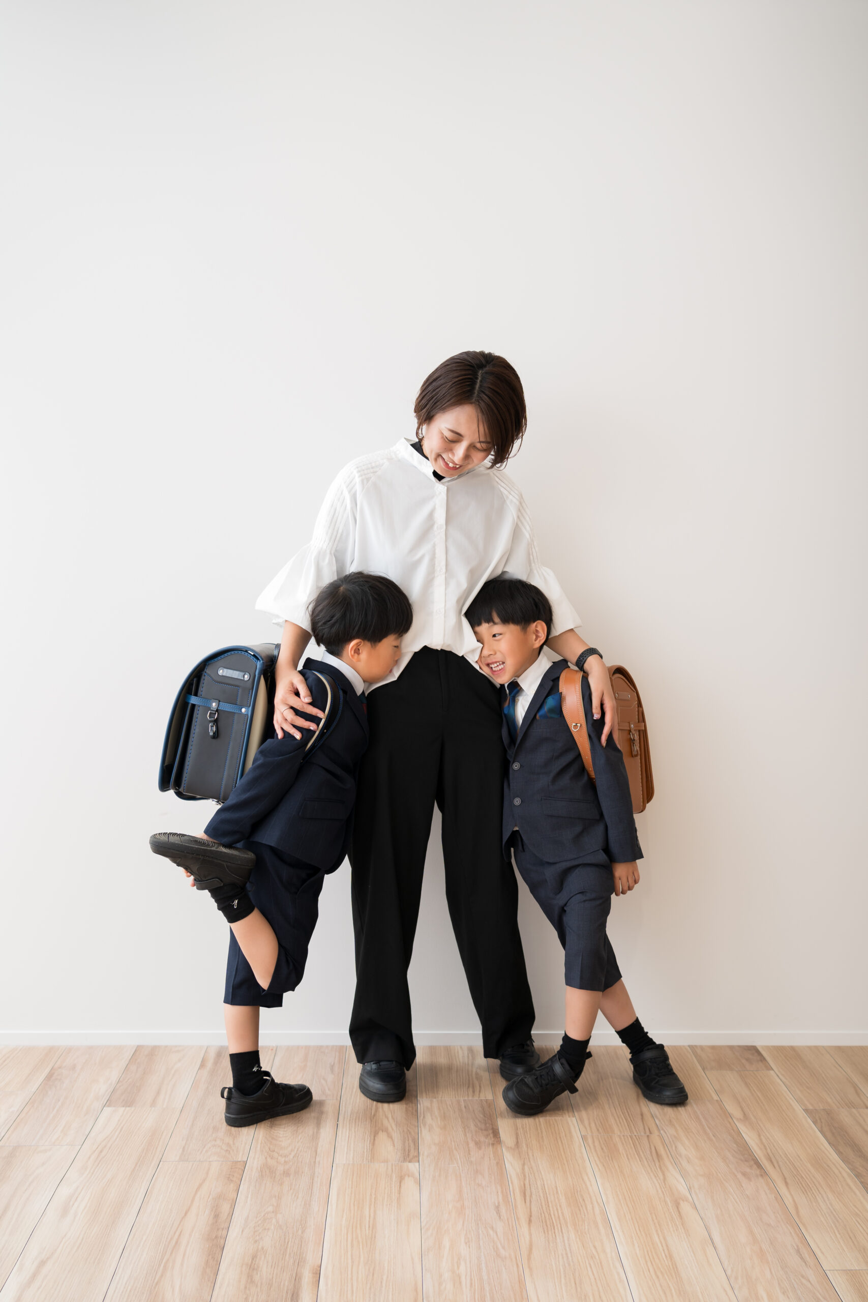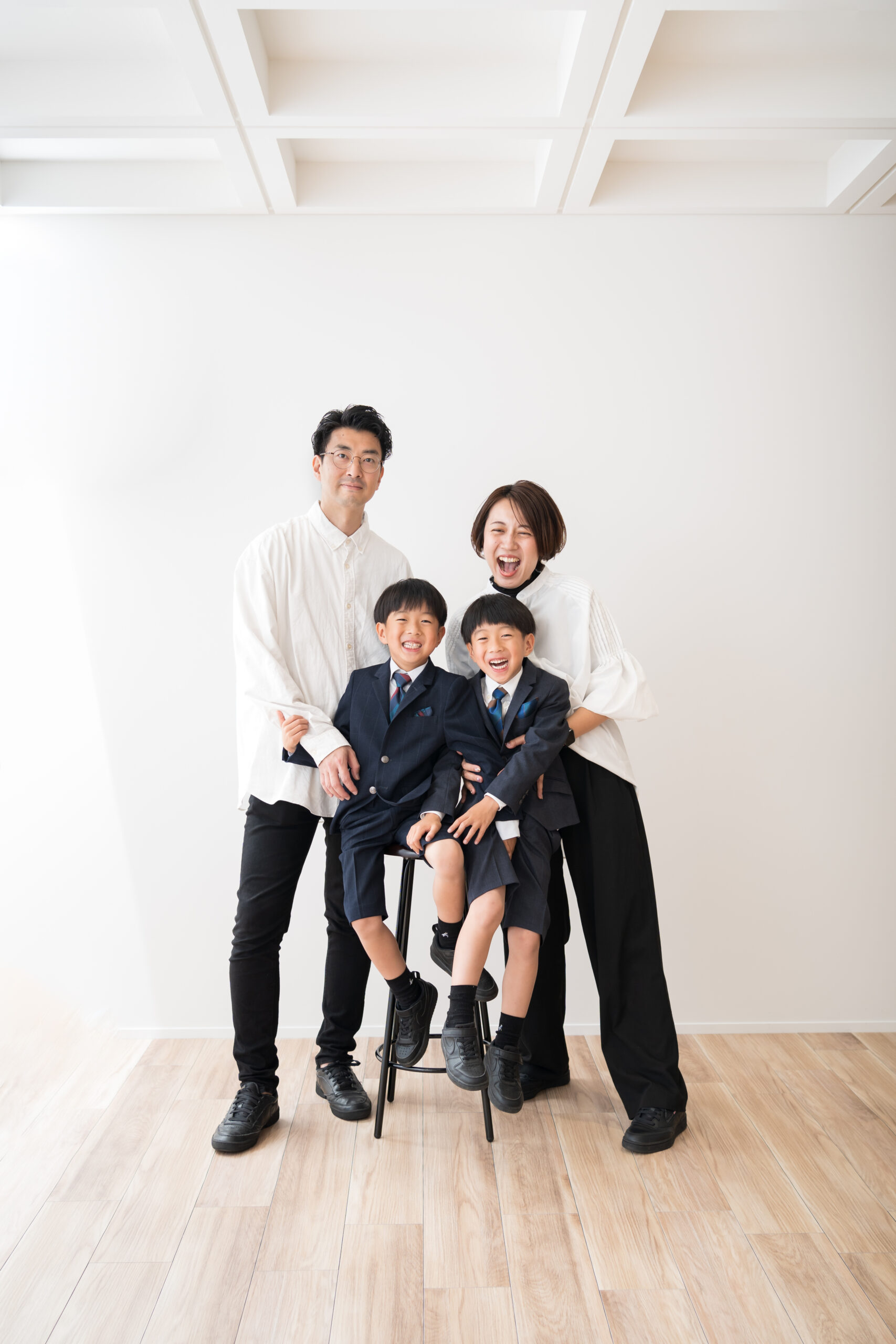 (((PHOTO CELEBRATION PLAN)))お子様の小学校入学記念に、ファミリーフォトを撮影いただきました。ピカピカのランドセルと元気いっぱいの双子のご兄弟。賑やかなご家族の様子が伝わってくる微笑ましいフォトになりました。PHOTO WHITEの広いスタジオは撮影中貸し切りなのでお子さんが元気に走り回っても大丈夫。貴重な成長の一瞬をPHOTO CELEBRATIONで残しましょう。
