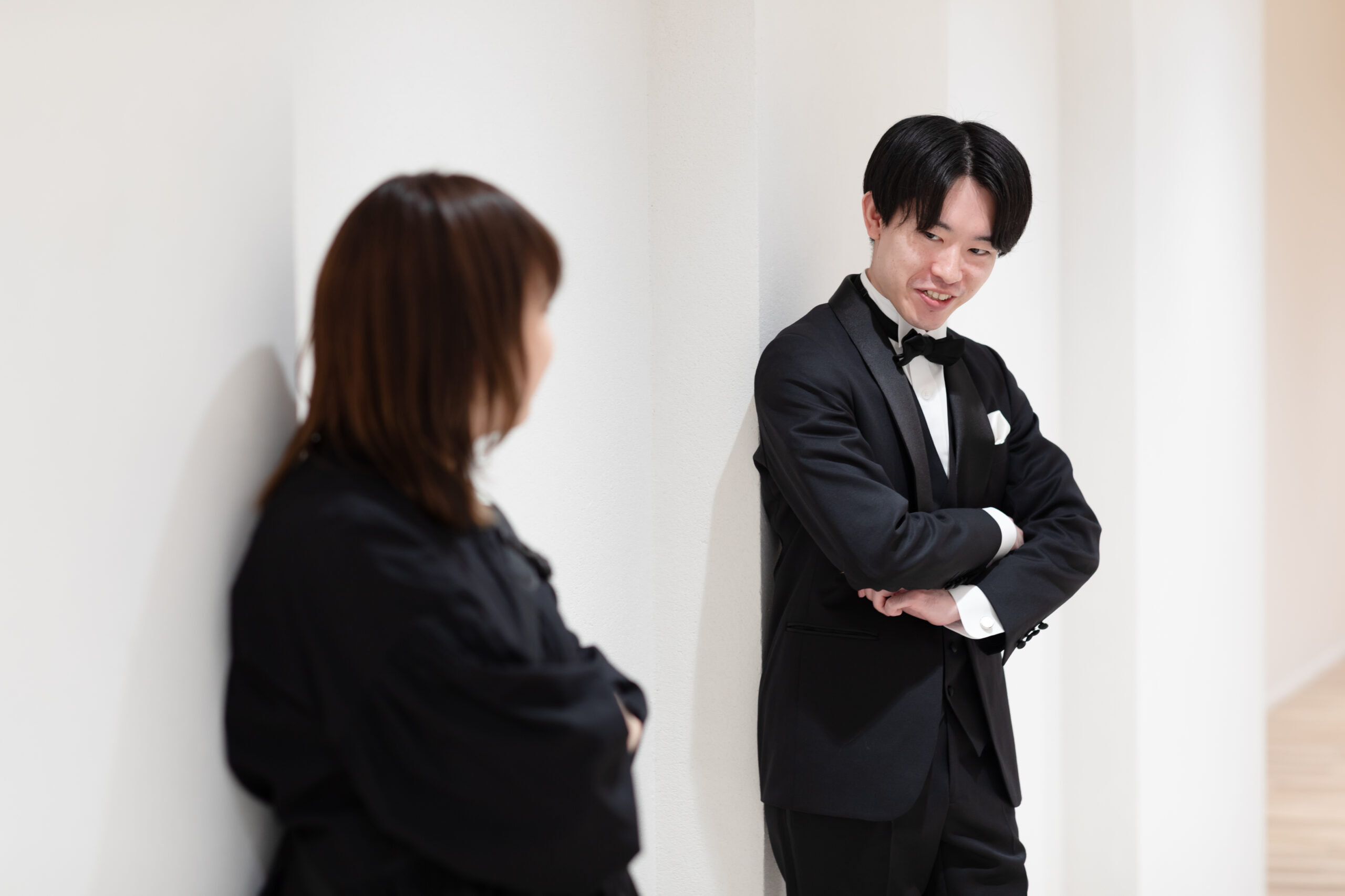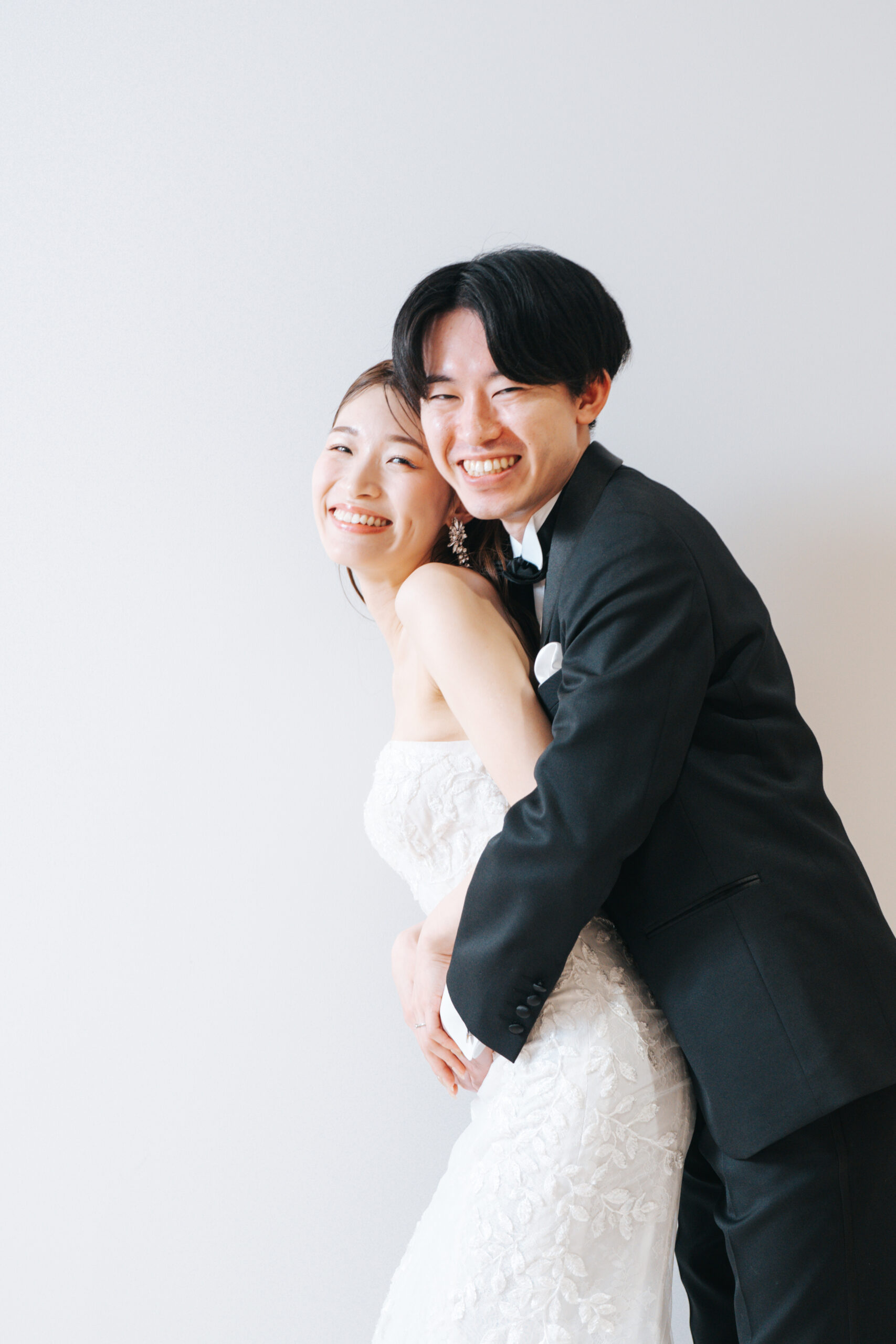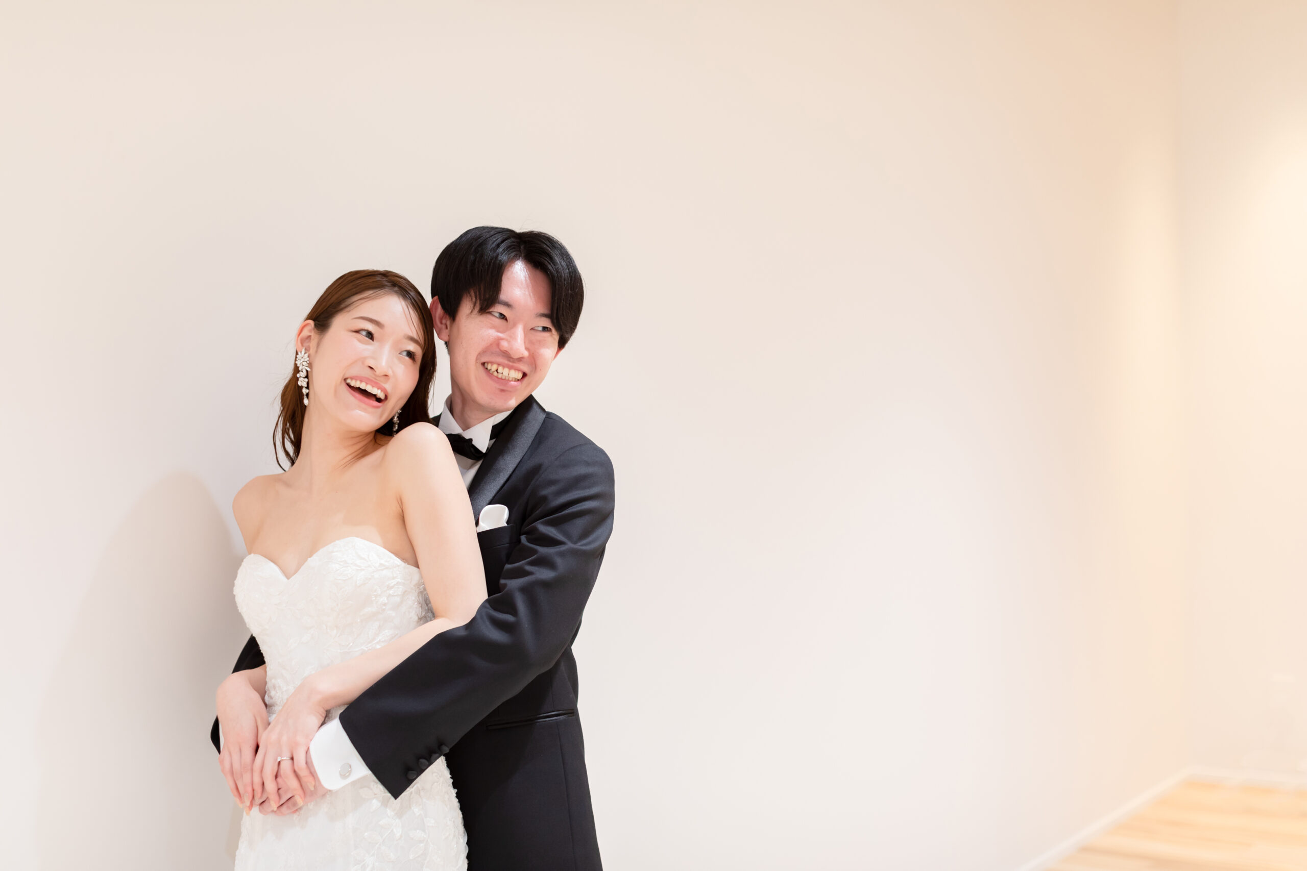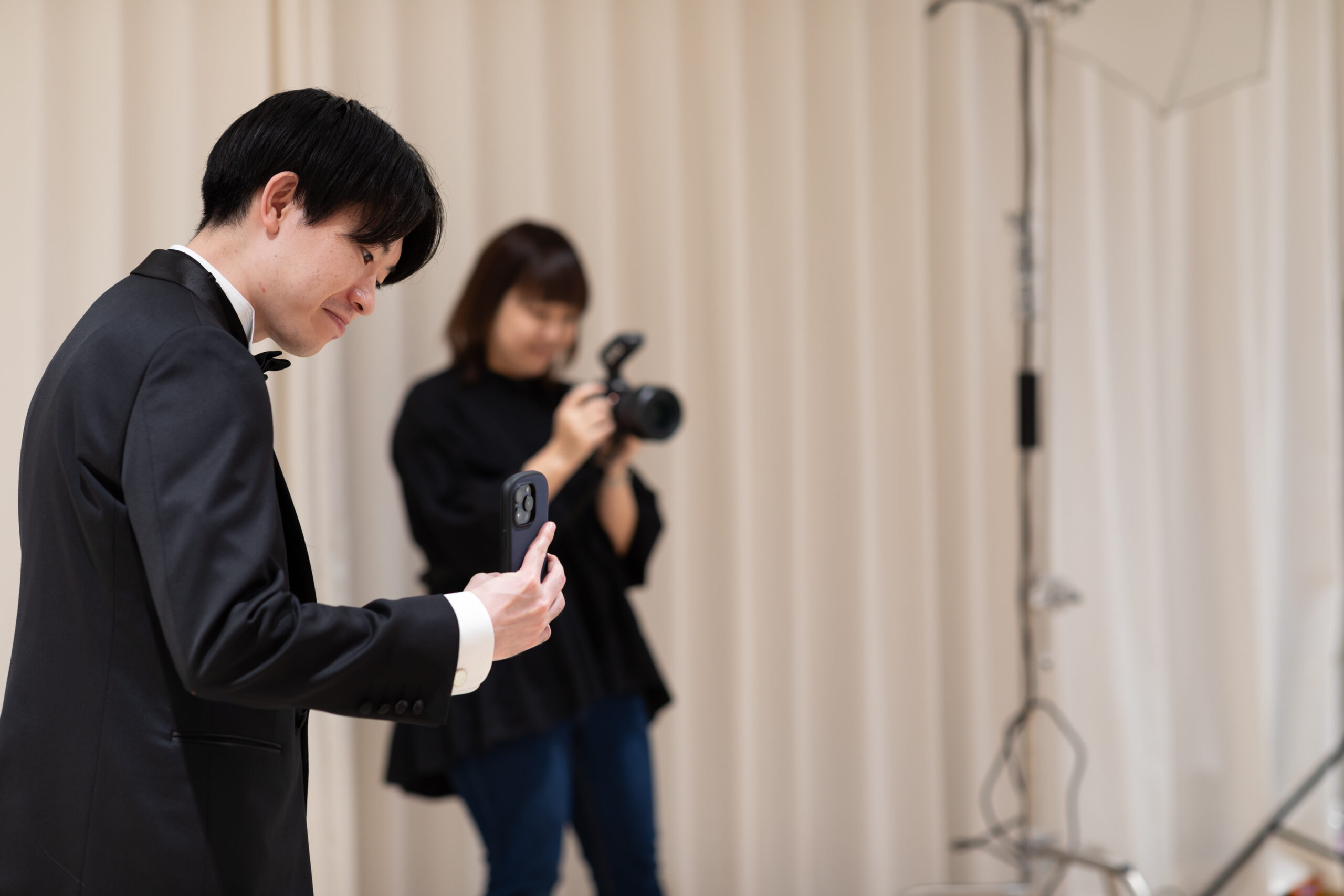 ((( 撮影オフショット)))初めてのウェディングフォト撮影はポージングや表情など不安なもの。決まったポージングやカットがないからこそ、フォトグラファーがお2人とのコミュニケーションの中で自然な表情を引き出していきます。撮影が進むにつれてどんどん素敵な表情に。それを見守るお互いの笑顔もまた素敵な思い出です。