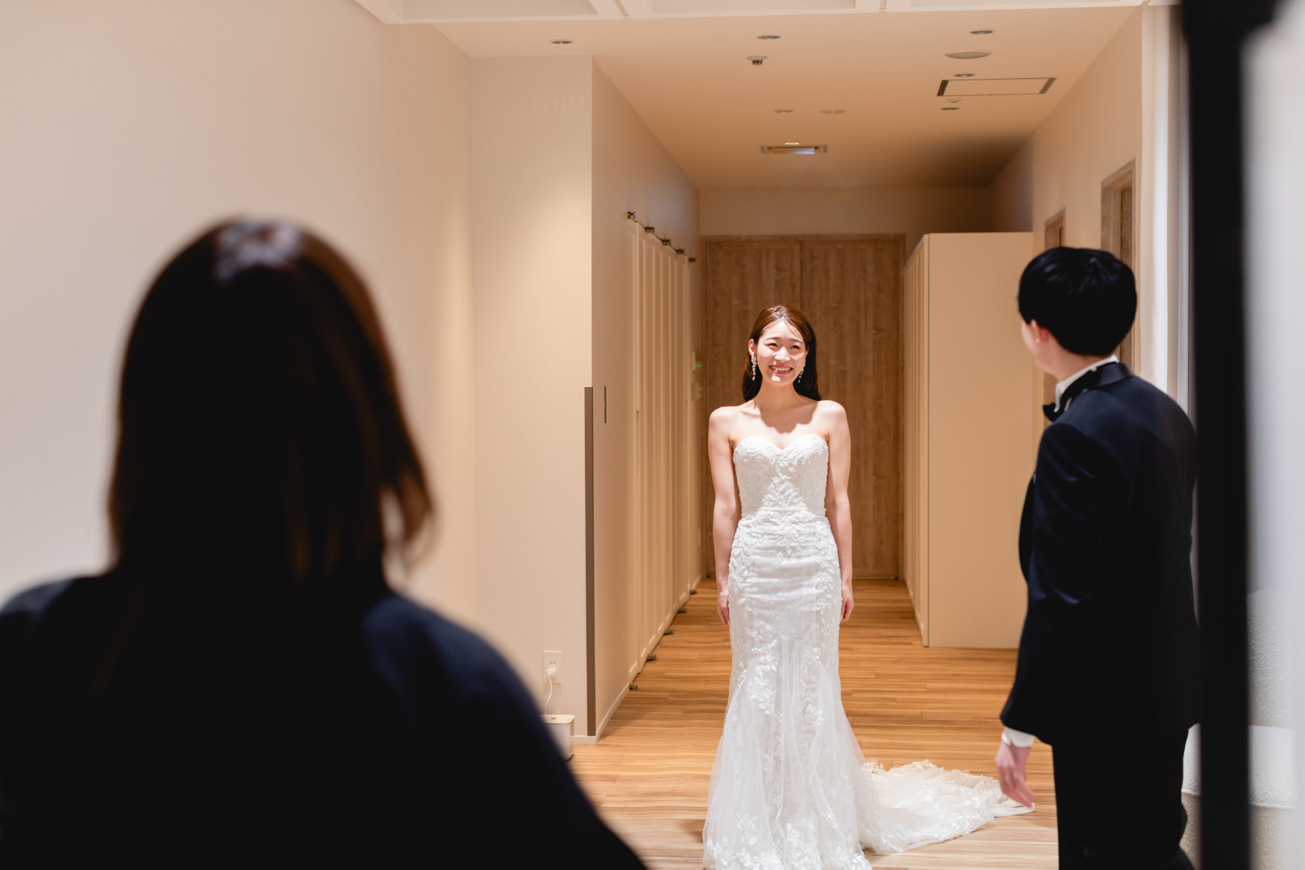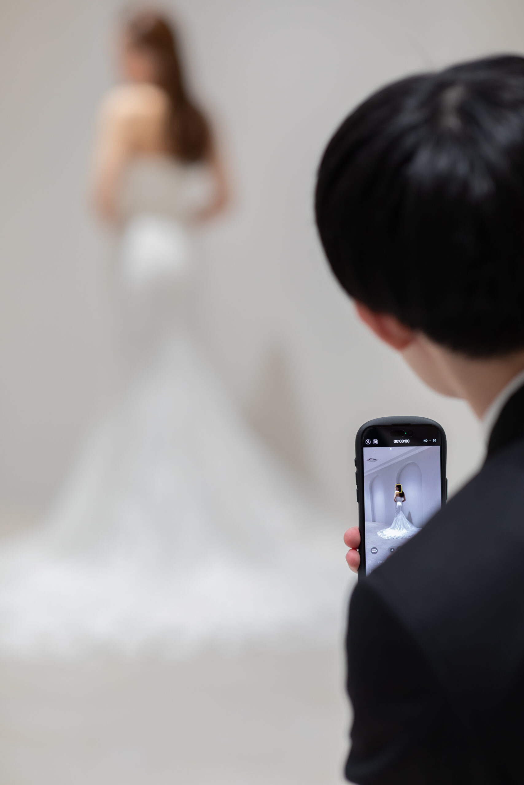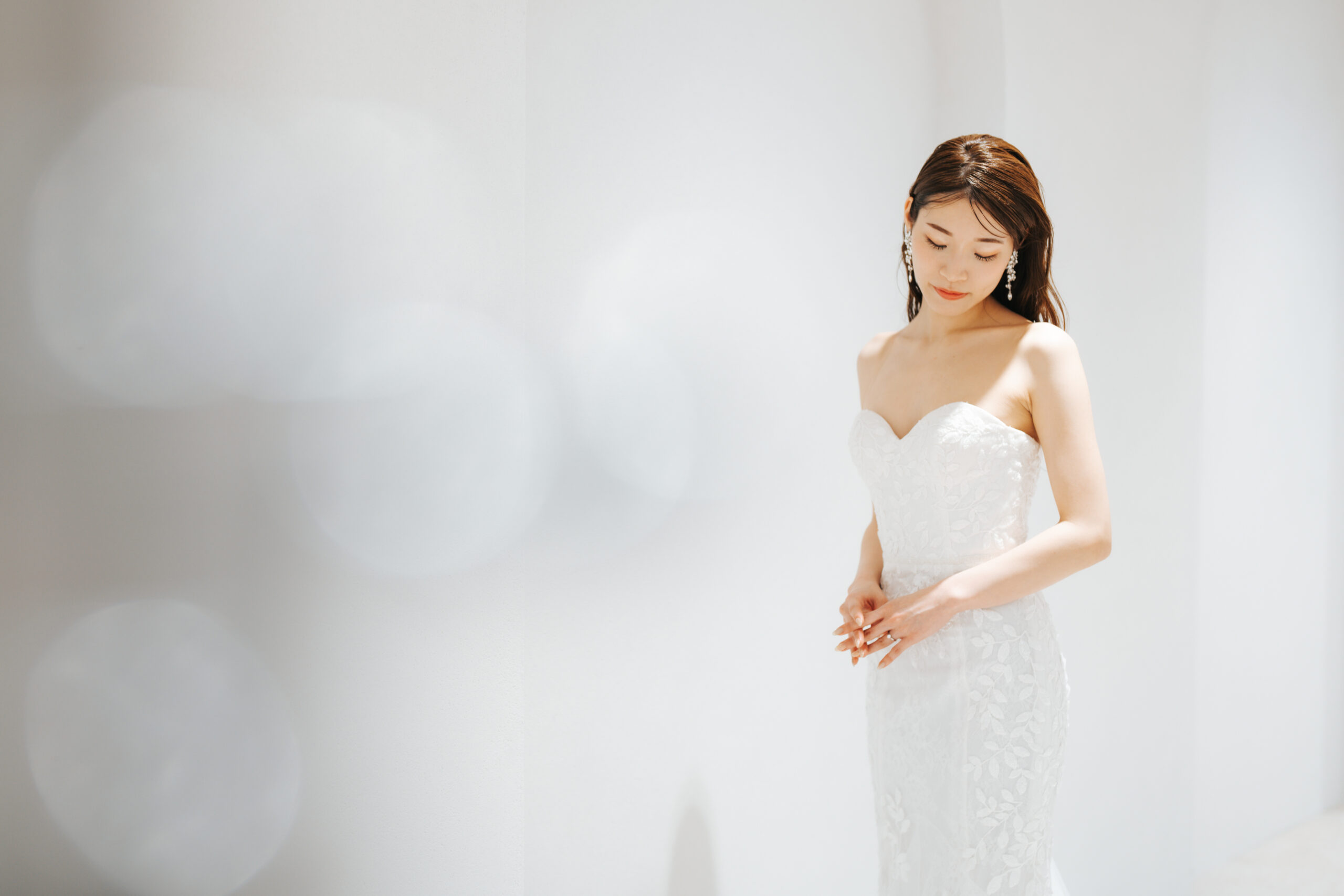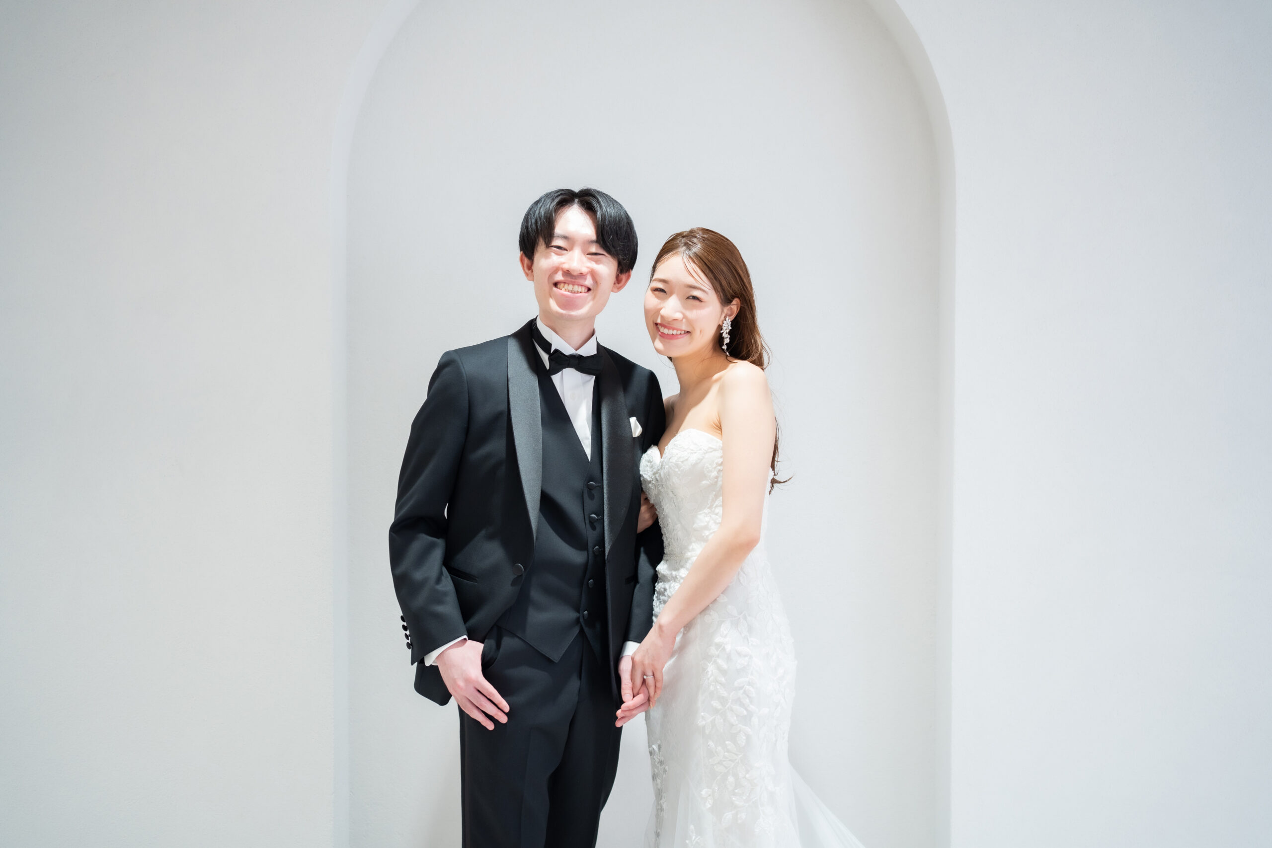 ((( 撮影オフショット)))初めてのウェディングフォト撮影はポージングや表情など不安なもの。決まったポージングやカットがないからこそ、フォトグラファーがお2人とのコミュニケーションの中で自然な表情を引き出していきます。撮影が進むにつれてどんどん素敵な表情に。それを見守るお互いの笑顔もまた素敵な思い出です。