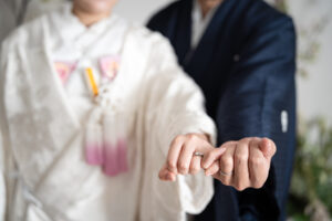 白無垢は着物のお柄選びだけではなく、フォトイメージやお顔映りに合わせたコーディネートをご提案しております。白無垢ってどう選べばいいか分からない、という疑問にもブライダルスタイリストが衣装選びをご案内いたしますので安心してお任せください。