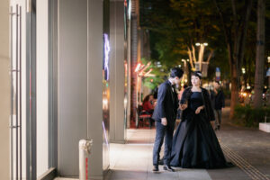街灯に照らされたおふたりなど、夜景ならではのドラマティックな表現が叶います。