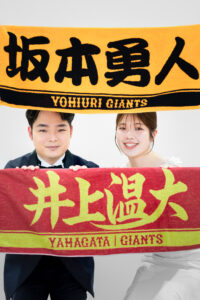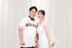今回の前撮りは、野球を愛するおふたりらしいコーディネートで。