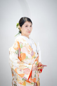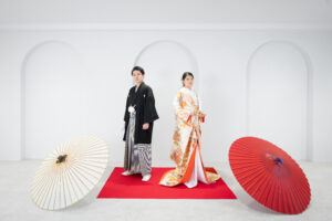 白を基調としたスタジオでは、和装・洋装それぞれの魅力を最大限に引き出す撮影が可能。